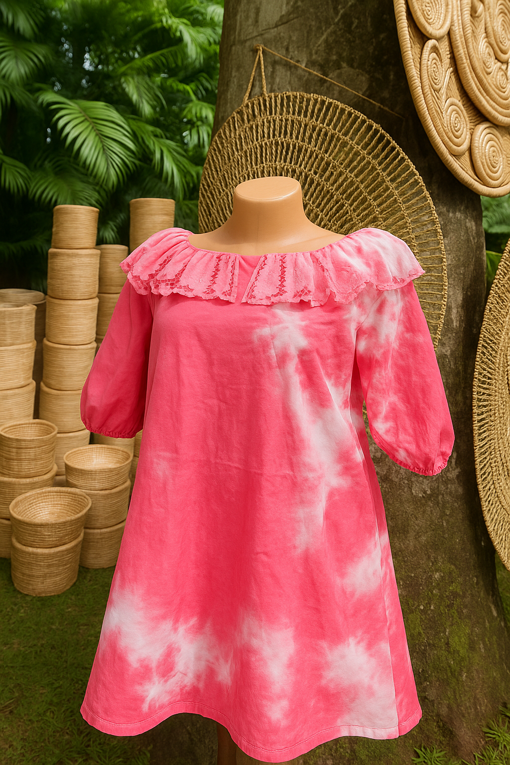 Upcycled by Star VeriTex: 100% cotton, size 12. Each fabric is lovingly treated with natural or synthetic dies to create a vibrant, urban, chic fashion statement. All pieces are transformed by Star VeriTex herself.