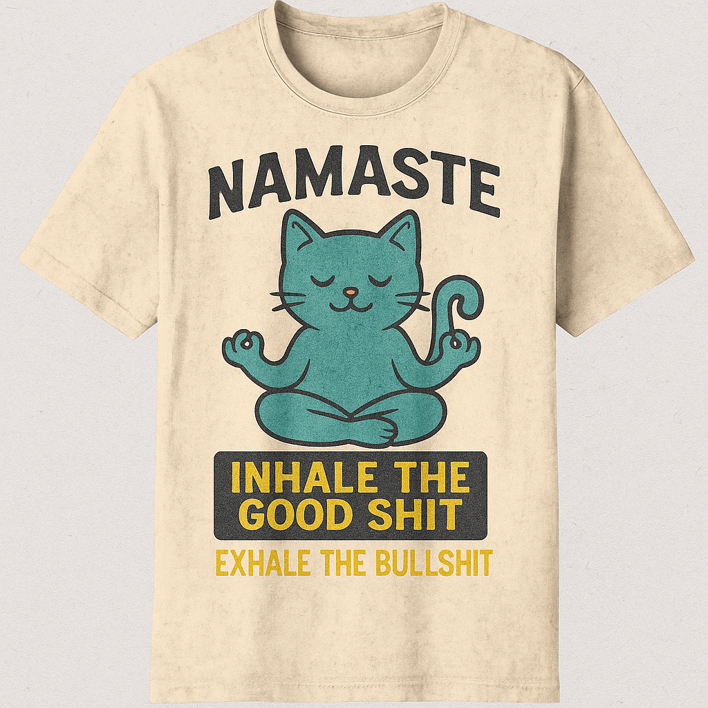 Bring peace and humor to your wardrobe with the Namaste Cat Yoga T-Shirt. Featuring a playful turquoise cat meditating with a cheeky twist, this vintage-inspired tee blends mindfulness and fun. Made from soft, durable cotton with a distressed off-white finish, it’s perfect for casual wear, yoga sessions, or simply spreading good vibes.